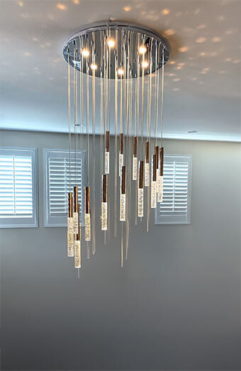 Professional installation of all lighting types including pendant lights, downlights, oyster lights, chandeliers, and feature lighting for homes and commercial premises.